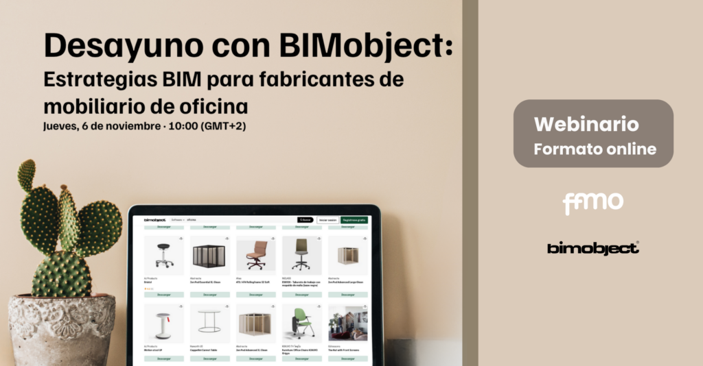 El acceso a la información de producto llega a los prescriptores por múltiples inputs; por ello, desde FAMO queremos -a través de un webinario- acercar a los fabricantes de mobiliario de oficina una solución donde posicionar sus productos y adecuarlos no solo para el mercado español, sino en sus procesos de internacionalización: BIMobject®, la plataforma líder a nivel mundial que permite a las empresas ofrecer sus productos en el lugar exacto en el que los profesionales de la construcción los buscan.